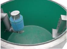 Großer Speicher für Fettstoffe, mit Innenbeschichtung oder HDPE-Inliner, Einbauteile aus Edelstahl und Spezialwerkstoffen, Abdeckung Kl. D 400 kN, geruchsdicht verschraubt.
