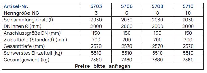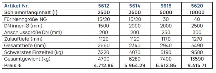 • Schlammfang als Schlamm-Sammelraum ohne Trennwand mit nur 50% des sonst nach DIN geforderten Schlammfanginhaltes.