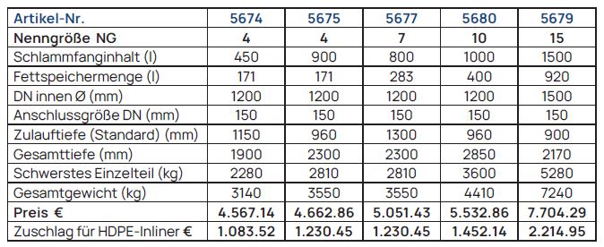 Der Fettabscheider ARGUS-PLUS ist ein Kompaktabscheider mit Schlammfang und Fettabscheider in einem Behälter, Zulassung Nr. Z-54.1-441, nach DIN 4040, EN 1825.