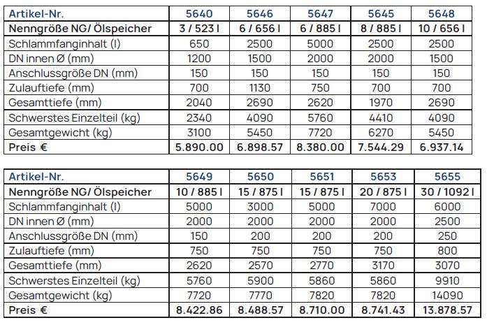 Einsatzbereiche: Betriebe mit ölhaltigem Abwasser, Nenngrößen: NG 3 – NG 60.