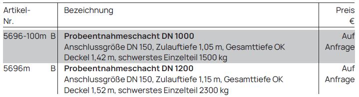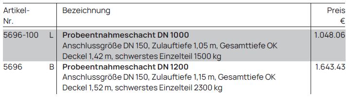 Probeentnahmeschacht Modell „Stadt München“ ohne Handschieber