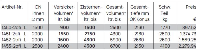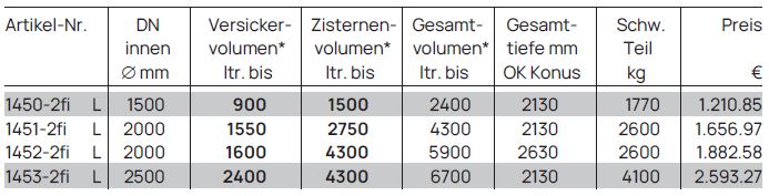 Sicker-Zisternen „2 in 1“ ohne Filter, bestehend aus: