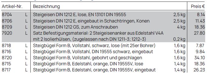 Steigbügel Form B DIN 19555, EN 13101-Klasse I bieten eine breite Trittfläche bieten und werden einläufig (übereinander in einer Linie) angeordnet.