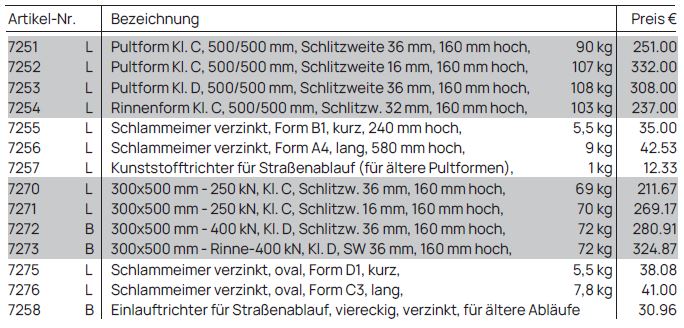 Die Aufsätze haben einen Innendurchmesser von 450 mm und sind entsprechend ihrer Einbaustelle in verschiedene Belastungsklassen unterteilt. Für Fahrbahnen werden üblicherweise Klassen wie C 250 (für Bordrinnen) oder D 400 (für Fahrbahnen und Industriegebiete) verwendet, um sicherzustellen, dass sie den Verkehrslasten standhalten. Es gibt verschiedene Formen, darunter die häufige Pult- oder Rinnenform (500 x 500 mm) oder rechteckige Formen (300×500 mm).