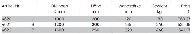 Der Fußauflagering mit Muffe nach DIN V 4034/1 dient als stabile Verbindung zwischen Ortbetonschächten und Muffenschächten im Kanal- und Tiefbau. Er ermöglicht den sicheren Übergang zwischen unterschiedlichen Schachtbauweisen und sorgt für eine dauerhafte und formstabile Schachtkonstruktion.