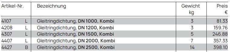 Dadurch werden punktuelle Belastungen auf die Dichtung verhindert, was die Dichtfunktion, Stabilität und Standsicherheit des gesamten Schachtbauwerks verbessert. Die Gleitringdichtung Kombi eignet sich besonders für Anwendungen im Kanal- und Tiefbau, bei denen eine sichere Abdichtung und gleichmäßige Lastverteilung erforderlich sind.