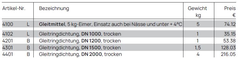 Für den fachgerechten Einbau von wandverstärktem Schachtmaterial mit Muffe werden spezielle Einbauartikel und Zubehörteile benötigt, die eine dichte, stabile und dauerhaft sichere Verbindung der Schachtbauteile gewährleisten.