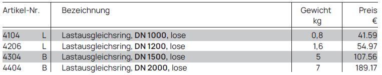 Der Lastausgleichsring wird zur statischen und hydraulischen Optimierung von Schachtbauwerken aus Beton eingesetzt. Er sorgt für eine gleichmäßige und stabile Lastübertragung zwischen den einzelnen übereinander gesetzten Schachtbauteilen.
