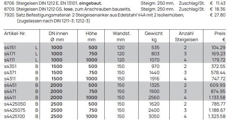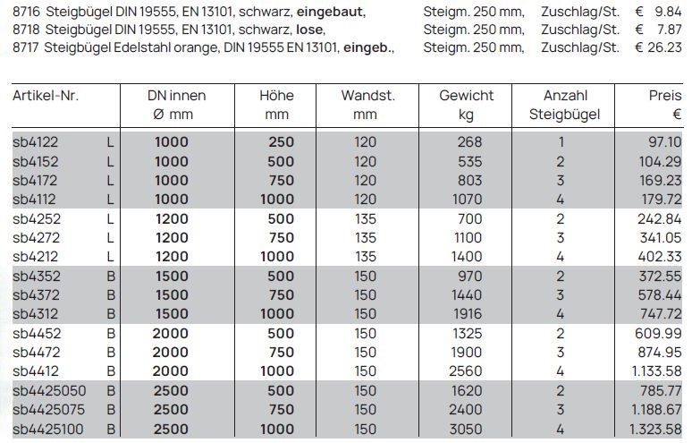 Schachtringe glatt, für Steigbügel DIN 19555 Form B
