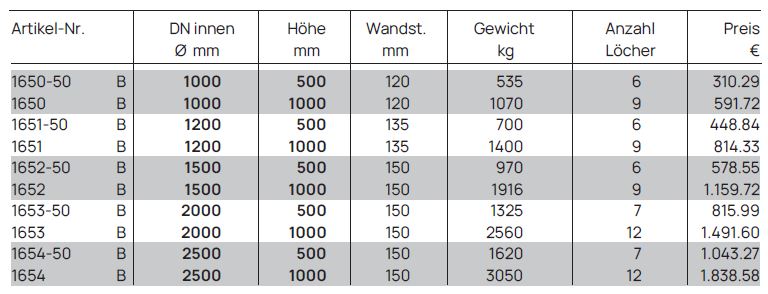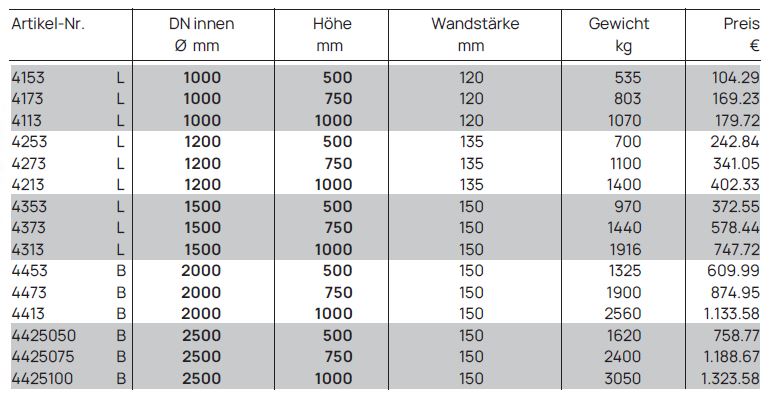 Unsere Schachtringe sind gleichwertig ausgestattet mit