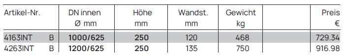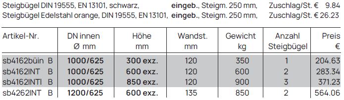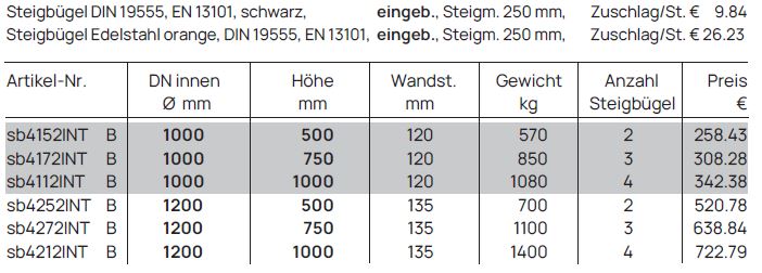 Schachtringe mit integrierter Dichtung, für Steigbügel Form B