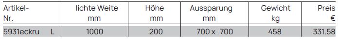 Die Übergangsplatte verfügt über eine Aussparung von 700 × 700 mm bei einer Bauhöhe von 200 mm und wird nach DIN 4034/2 gefertigt. Das patentamtlich eingetragene Design KÜHNE-IDEAL® steht für eine passgenaue und langlebige Ausführung.